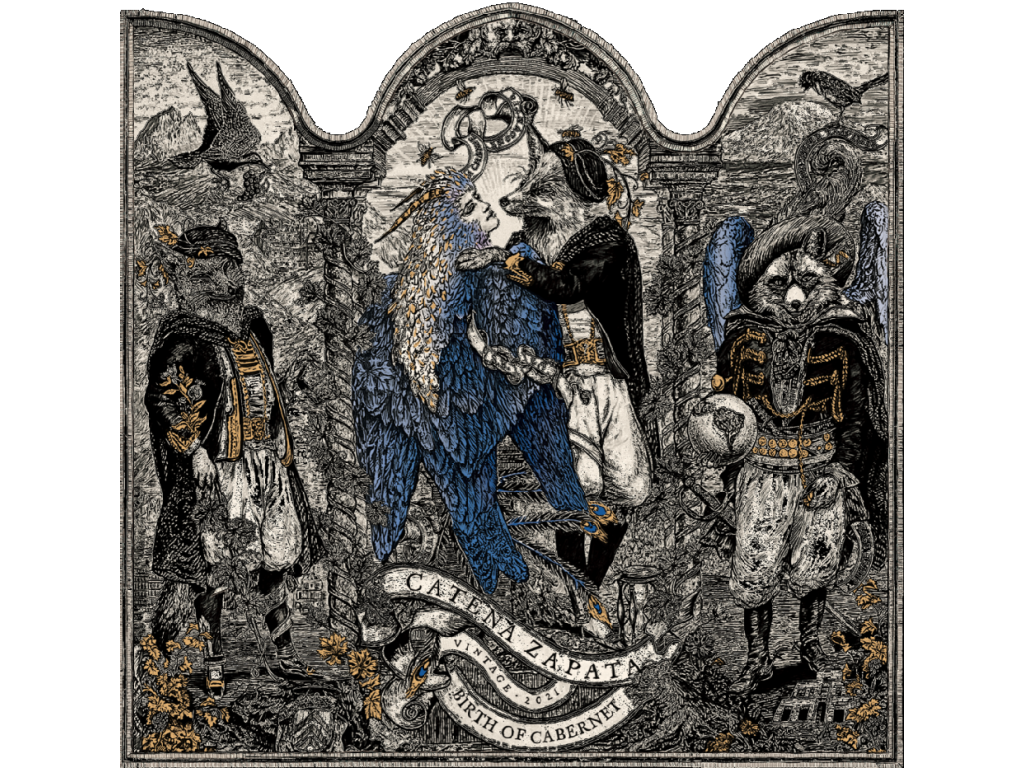 Naše alegorie révy jako zvířat podává tento příběh v fantaskním podání. Liška – Cabernet Franc – má vlastnosti kardinála Richelieua, prvního slavného milovníka zmíněného hroznu. Siréna – napůl žena, napůl pták – představuje Sauvignon Blanc v celé své divoké kráse. Vpravo je jejich dítě – Cabernet Sauvignon – zobrazeno jako světový cestovatel, který se vydává na dobrodružství od francouzských Pyrenejí až k pyramidě Catena Zapata na úpatí And v Argentině.